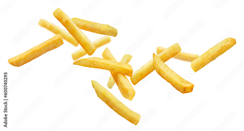 Flying delicious potato fries, cut out