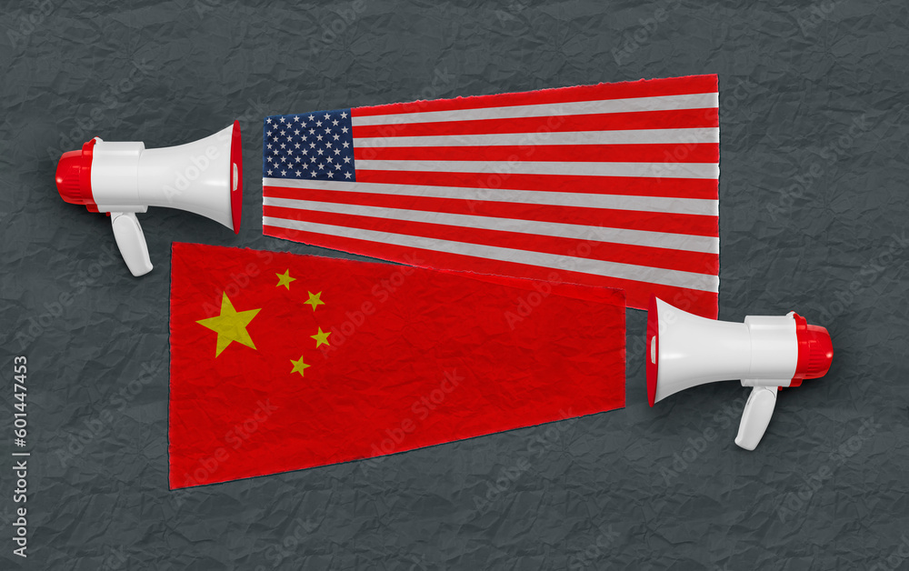 USA flag, Loudhailer or megaphone, loudspeaker. Announcement, elections, campaigning, voting, public hearing concept