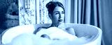 Purity and comfort concept. Beautiful young redhead girl takes bubble bath. Beautiful woman in the bathroom