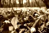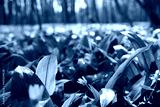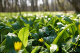 Wild garlic and other herbs growing outdoors in the forest