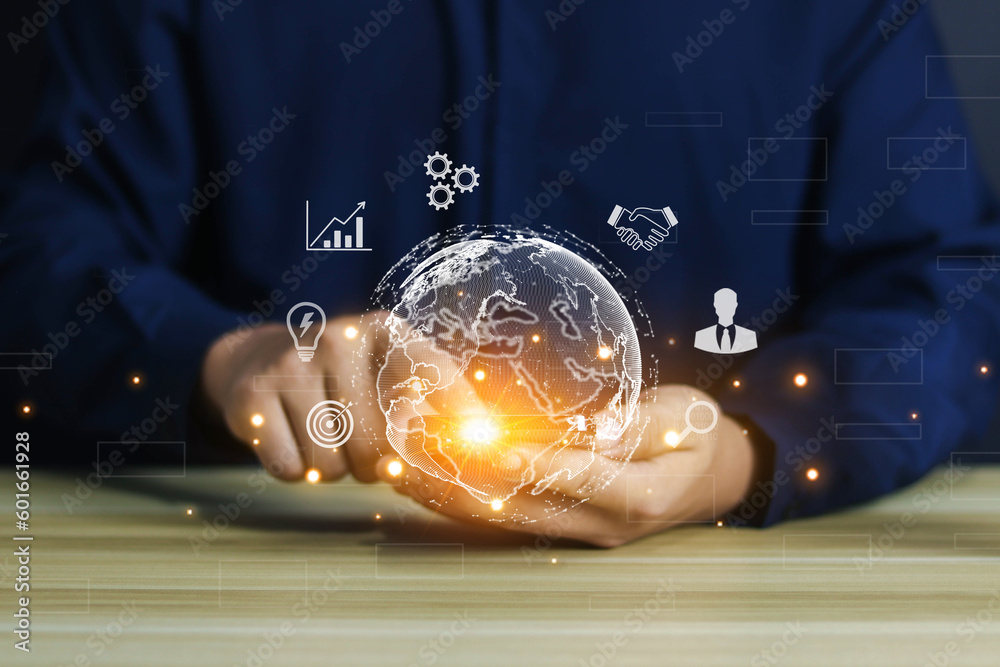 business people use Global internet connection application technology for business and digital marketing. finance and banking digital link technology big data