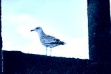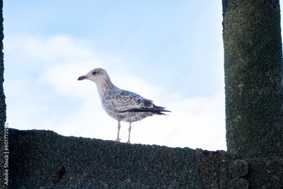 baby seagull on the pier with blue sky