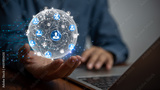 Customer relationship management with global Human Resources. Data development and business investment growth up customer service, social media, digital marketing online concept on virtual screens.