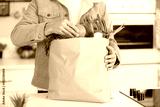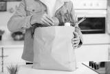 man unpacking shopping from a paper bag
