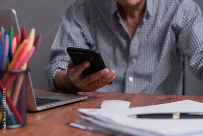 Asian senior businessman using mobile phone for work and communication