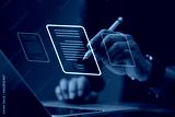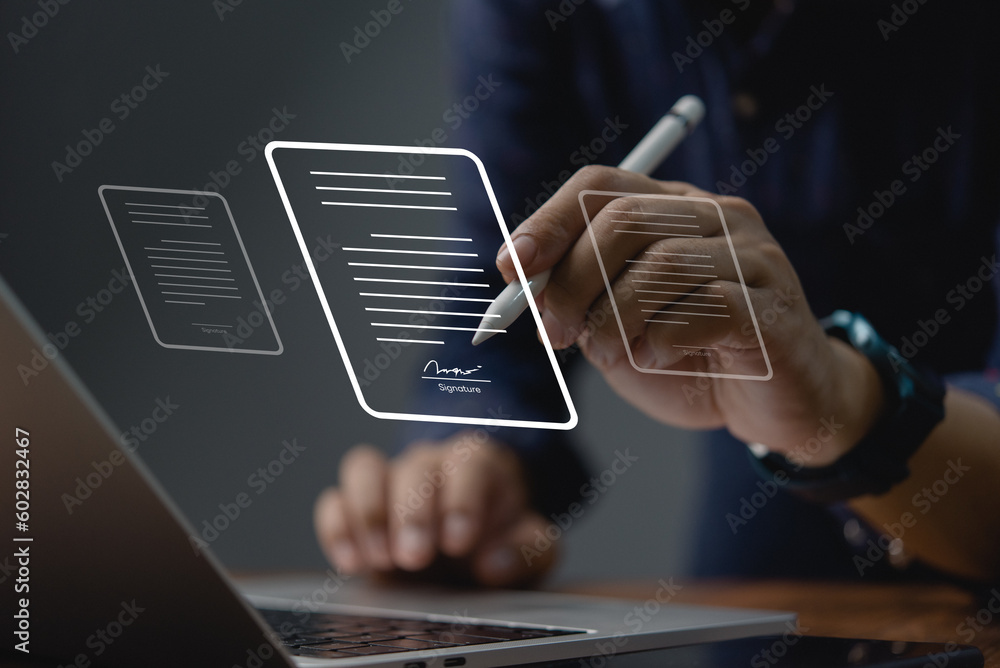 Electronic signing Digital contract on virtual document. Technology online e-signing business concept.