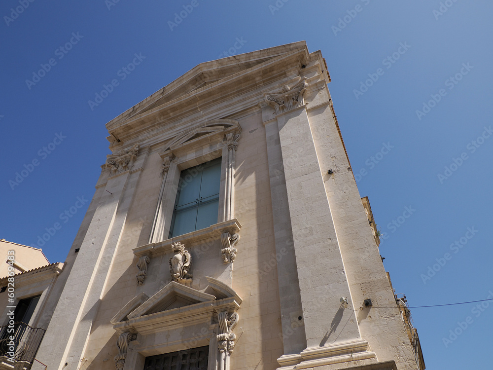 roof less church San Giovanni Battista San Giovannello Giudecca district ortigia syracuse old buildings street view Sicily on sunny day