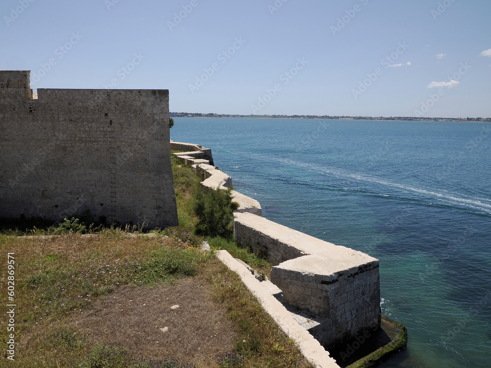 Maniace castle ortigia syracuse old buildings street view Sicily on sunny day