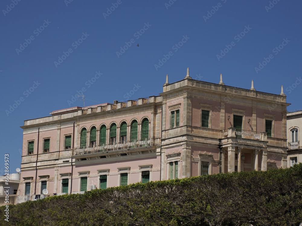 ortigia syracuse old buildings street view Sicily on sunny day