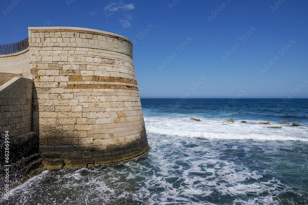 sea on ortigia syracuse old buildings street view Sicily on sunny day