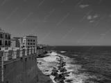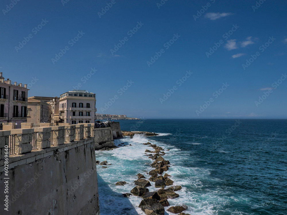 sea on ortigia syracuse old buildings street view Sicily on sunny day