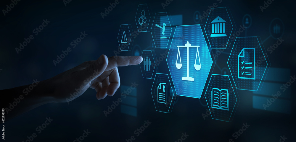 Law concept, Labor Law, lawyer, Legal advice for business, legal rights button on virtual touchscreen interface, blue tone