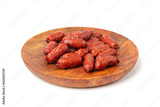 Mini Sausages Isolated, Dry Smoked Salami Sticks, Small Kielbasa, Cabanossi, Kabanos, Dry Embutido, Chorizo
