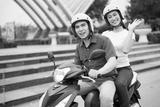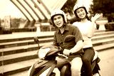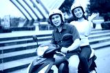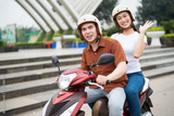 Young Asian couple on the motorbike