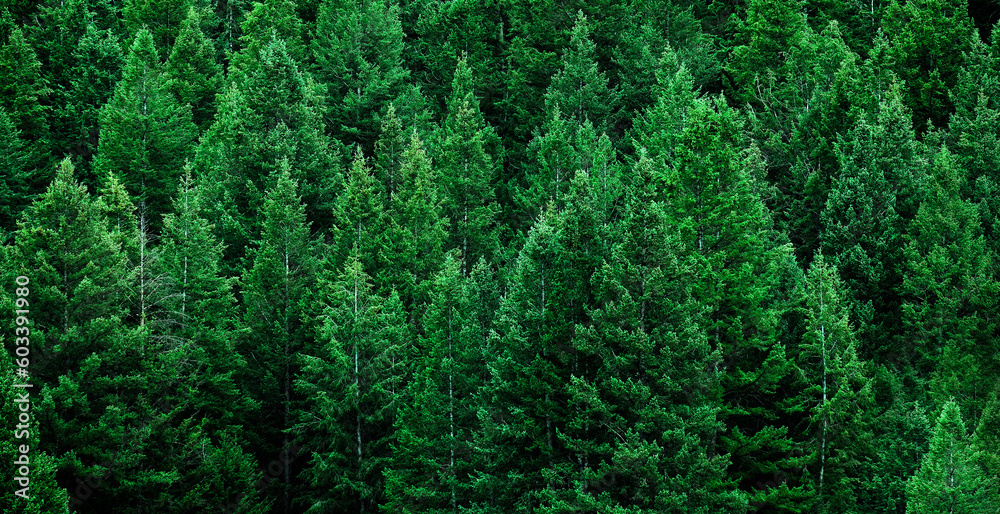 Lush Green Fresh Pine Tree Forest on Mountain Side Forrest