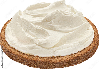 Rye bread slice with cream cheese swirl isolated on white background with clipping path