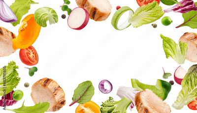 Grilled chicken slices and chopped vegetables