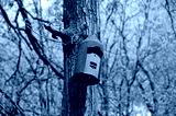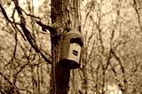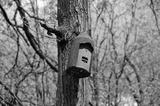 Woodcrete bat roosting box hanging on a tree