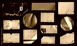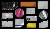 collection of blank old sticker, label, price tag template for mockup. isolated dirty, ripped, half peeled stickers