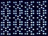 colorful glowing square object on black background. lamp with blue and red led lights shining in the dark night, modern violet, purple neon light, club and home equipment