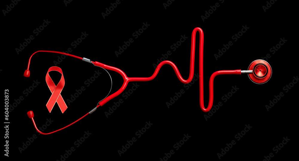 Stethoscope in the shape of a Heart Beat on a EKG with red silk ribbon