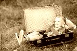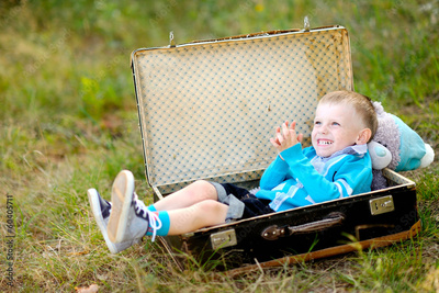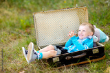 portrait of little stylish boy outdoors