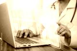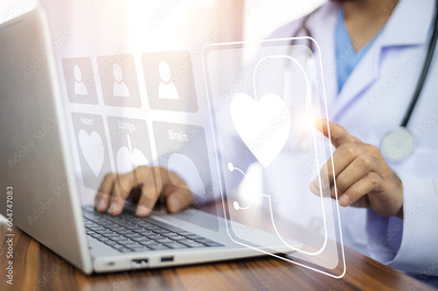 Doctor using technology document management on computer system management for cardiologist Specialist in treating heart disease for treatment in hospital , DMS document management concept