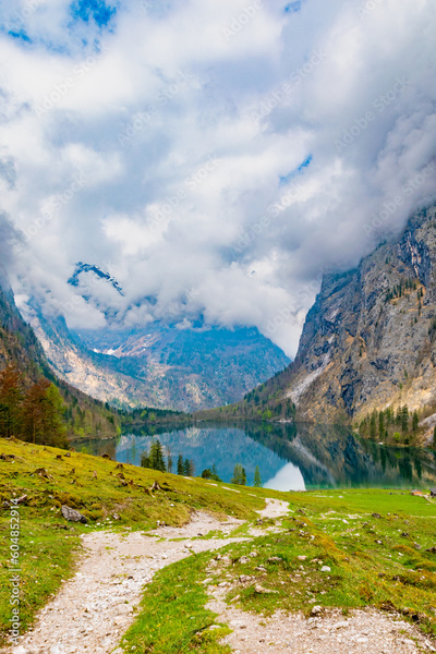 View of the hiking trail towards Lake Obersee in Berchtesgaden