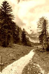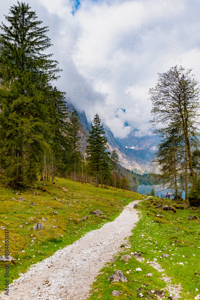 View of the hiking trail towards Lake Obersee in Berchtesgaden