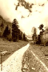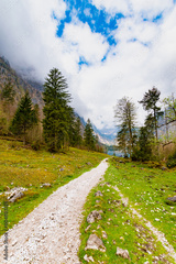 View of the hiking trail towards Lake Obersee in Berchtesgaden