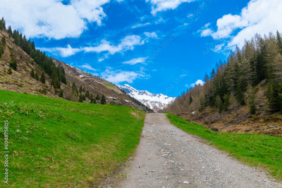 hiking path towards the Italian alps (Ahrntal valley, south tyrol, Italy)
