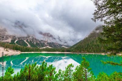 shore of the Lake Braies (lago di braies, south tyrol, Italy)