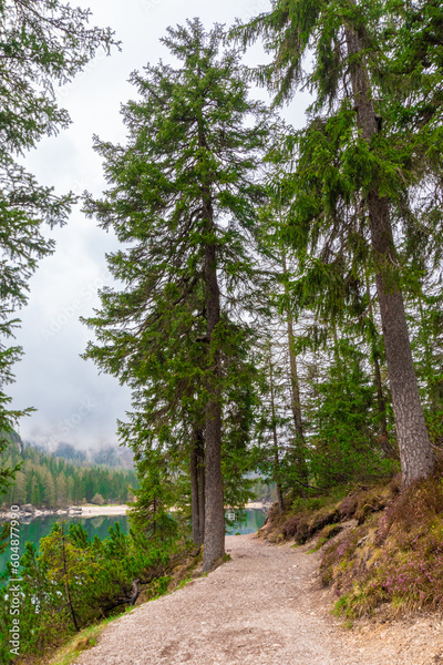 shore of the Lake Braies (lago di braies, south tyrol, Italy)