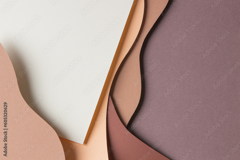 Abstract colored paper texture background. Minimal paper cut style composition with layers of geometric shapes and lines in shades of beige and brown colors. Top view