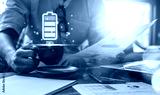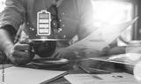 futuristic, power, alternative, charge, transportation, display, electrical, electricity, mobile phone, battery charger. battery is charging on top a coffee cup. power charge hud that's mean electric.