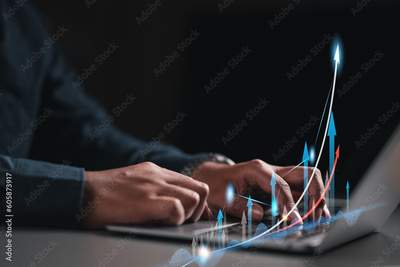 financial, finance, investment, chart, graph, invest, interface, indicator, rising, stock. typing data for calculation risk control investment. financial finance interface indicator. line is growth up