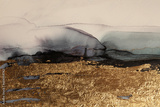 Art Abstract watercolor marble flow blot painting. Black, beige and gold Color canvas texture horizontal background. Alcohol ink.