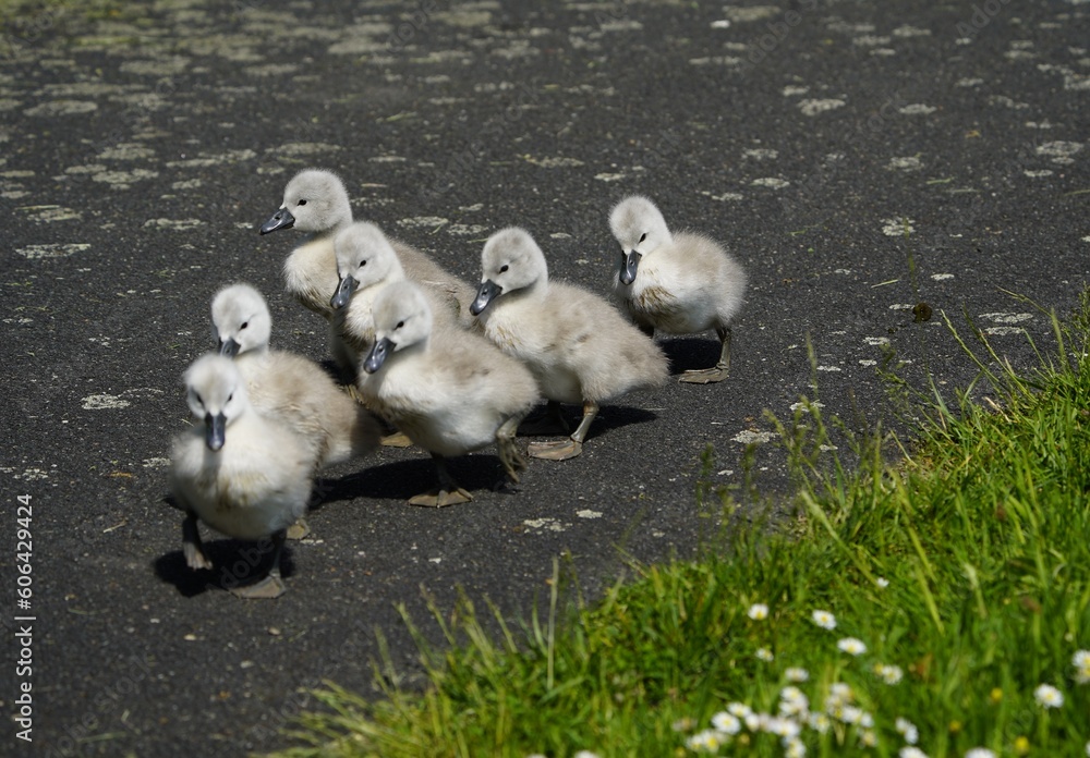 Swan chick, one week old. Cygnus olor, Anatidae family. Hanover, Germany.