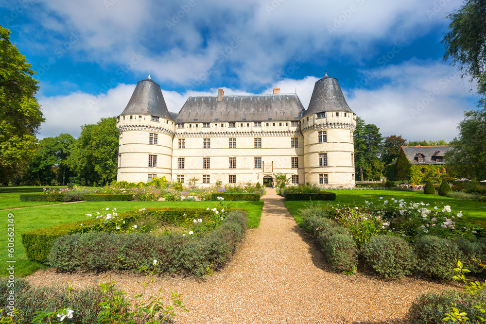 Garden at Chateau de l'Islette, France. old castle in Loire Valley.