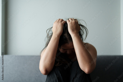 Mental health problem, Sad asian female anxiety depressed lonely in his home..
