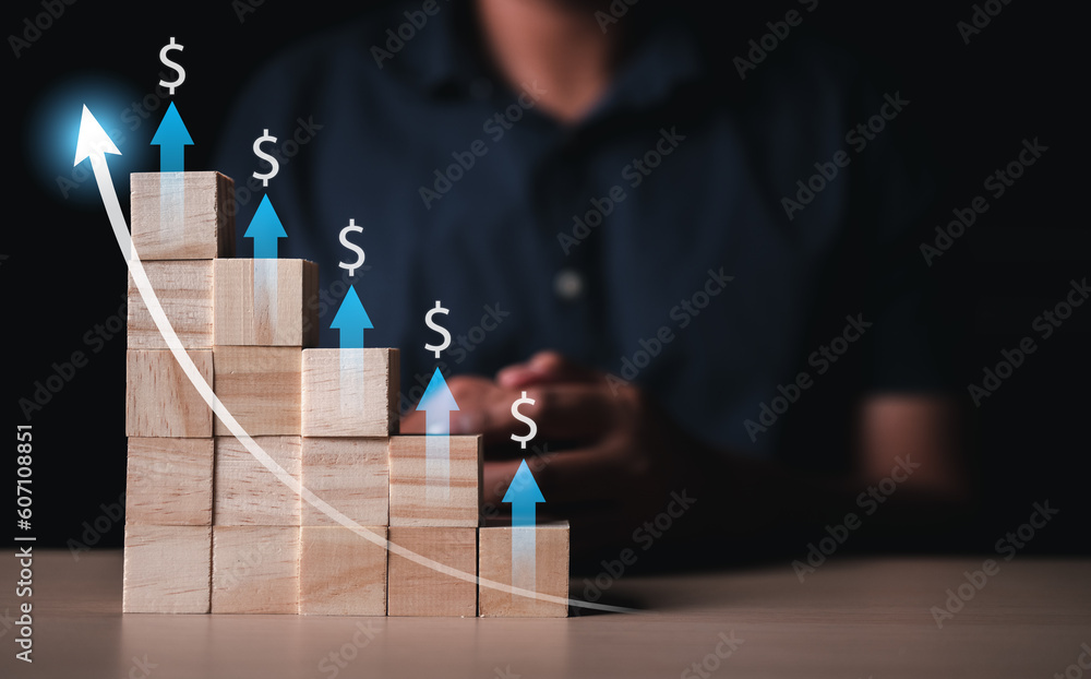 finance, investment, financial, invest, investing, growth, saving, wealth, investor, asset. cube asset is growing to take benefit. finance investment financial. dollar symbol and arrow point up.