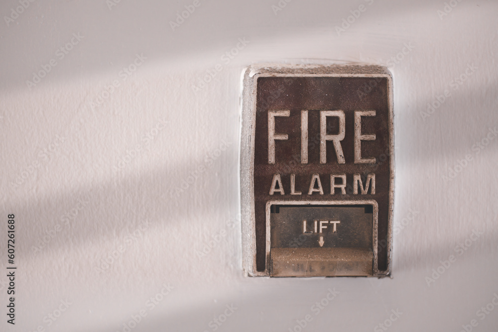 Fire Alarm switch on building wall used when in case of fire is safety building or factory concept.