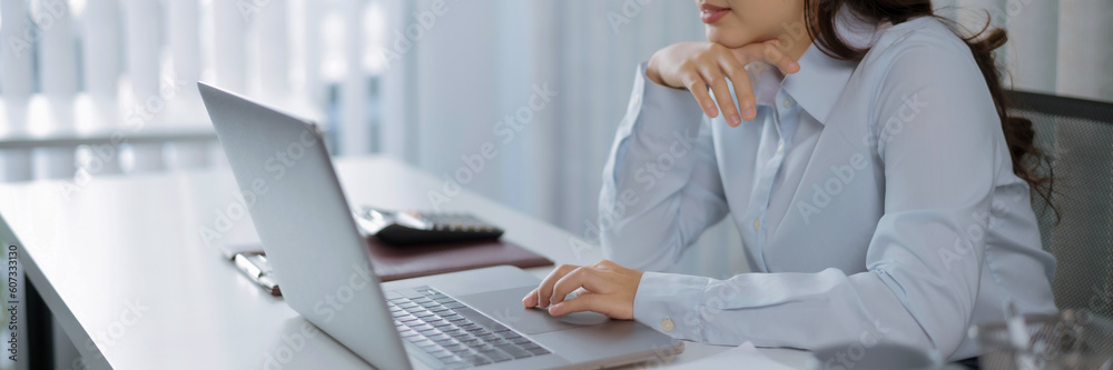 Asian businesswoman working on laptop Start up small business owner. business successful technology concept.