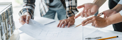 Architect working on the desk, construction project ideas architecture engineer Concept..