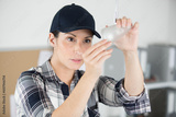 a woman fixing broken lamp