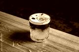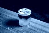 New York sour or Continental sour cocktail with bourbon or whisky garnished with dried lemon wheel at the wooden table at bar or restaurant, horizontal photo