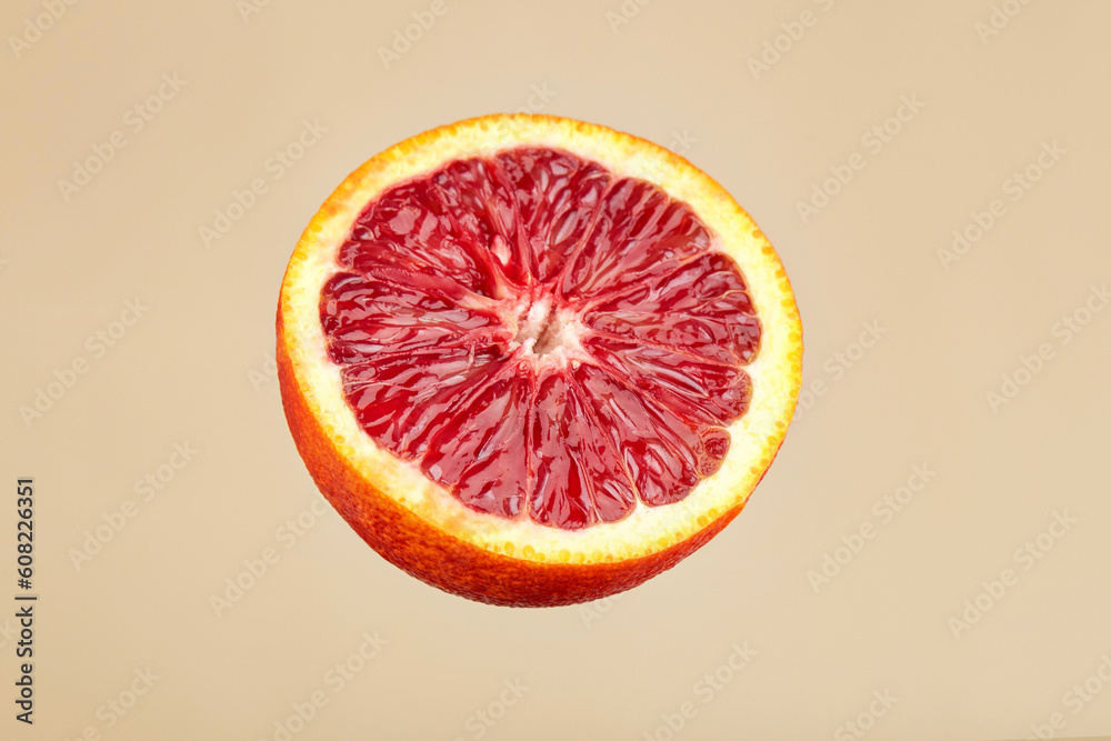 Half an bloody orange. Fresh juicy red orange. Blood red orange
