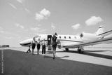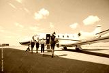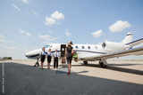 Rich Woman Walking Towards Private Jet At Airport Terminal