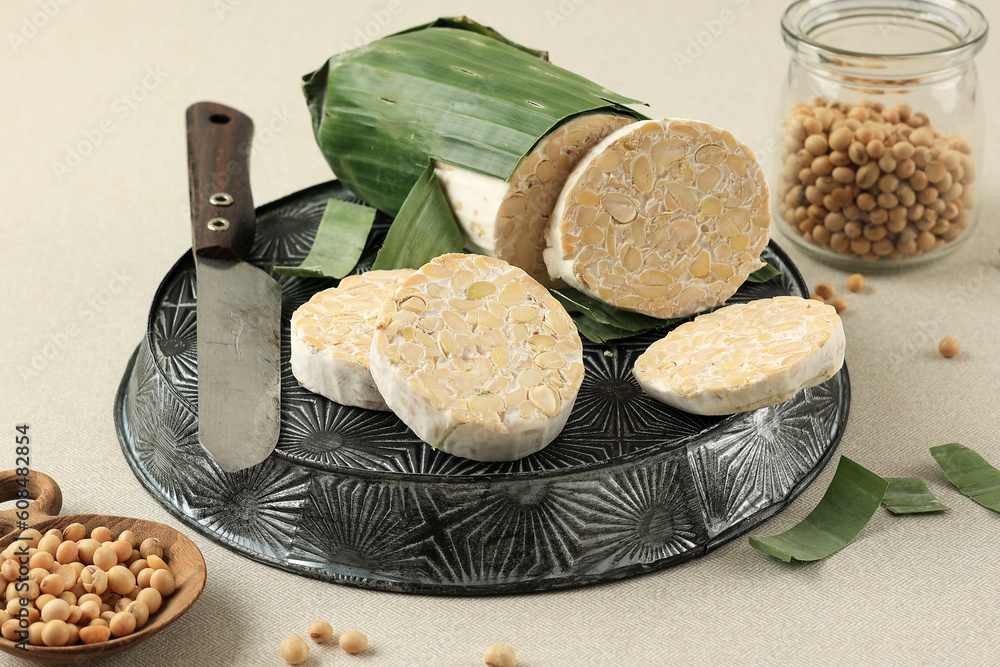 Slice Cut Round Tempeh Wrapped with Banana Leaf.