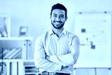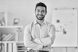 Smile, education and portrait of man teacher in a classroom or school and happy to study in a college or university. Academy, educator and young person or worker arms crossed and confident in class